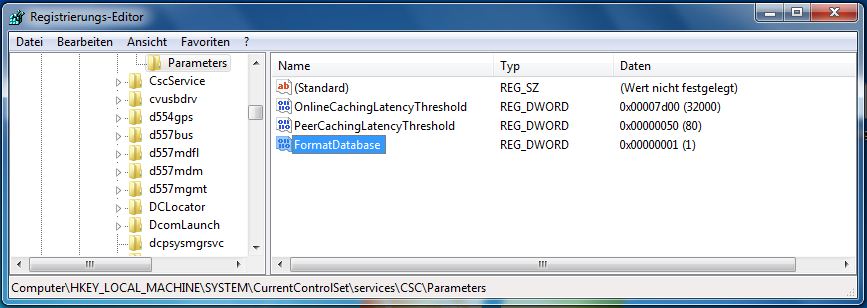 HKEY_LOCAL_MACHINE\SYSTEM\CurrentControlSet\services\CSC\Parameters